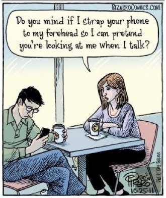 • Cell phone use – while talking to others, at the table, in the checkout line, while trying to multitask